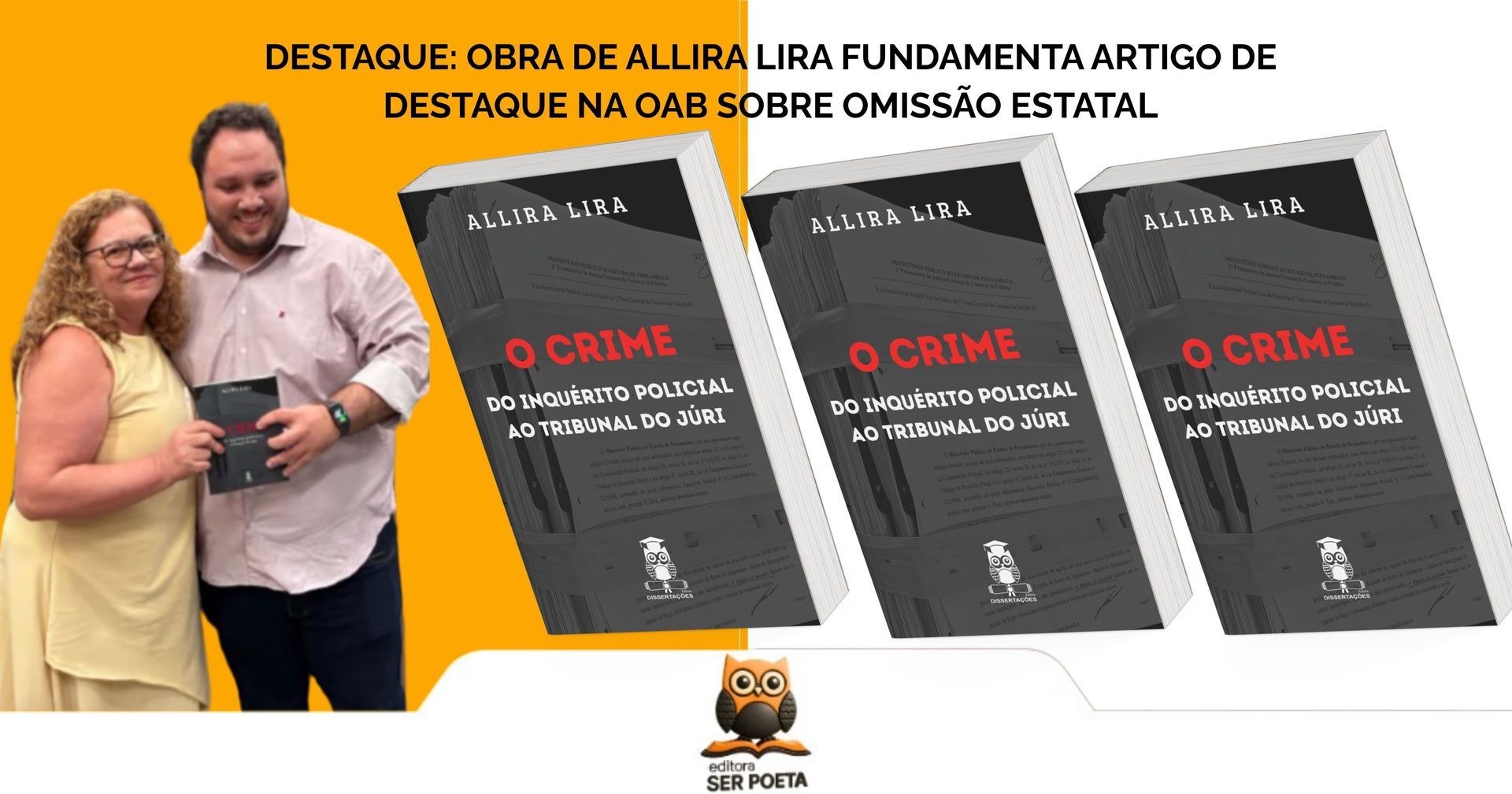 A Editora Ser Poeta comemora o impacto intelectual e social das obras de seus autores. Recentemente, a valente narrativa de Allira Lira tornou-se a base para um novo artigo jurídico do advogado e pesquisador Edvalderson Araújo, que foi oficialmente publicado no portal da OAB.