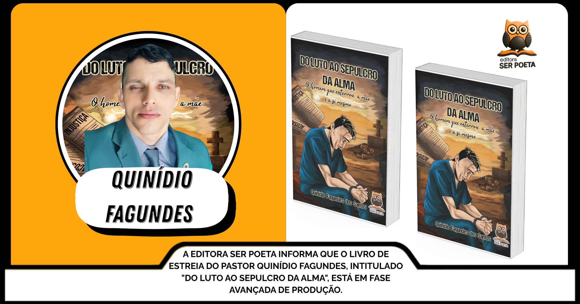 A Editora Ser Poeta comunica que está em fase avançada de produção o livro de estreia do Pastor Quinídio Fagundes: "Do Luto ao Sepulcro da Alma".